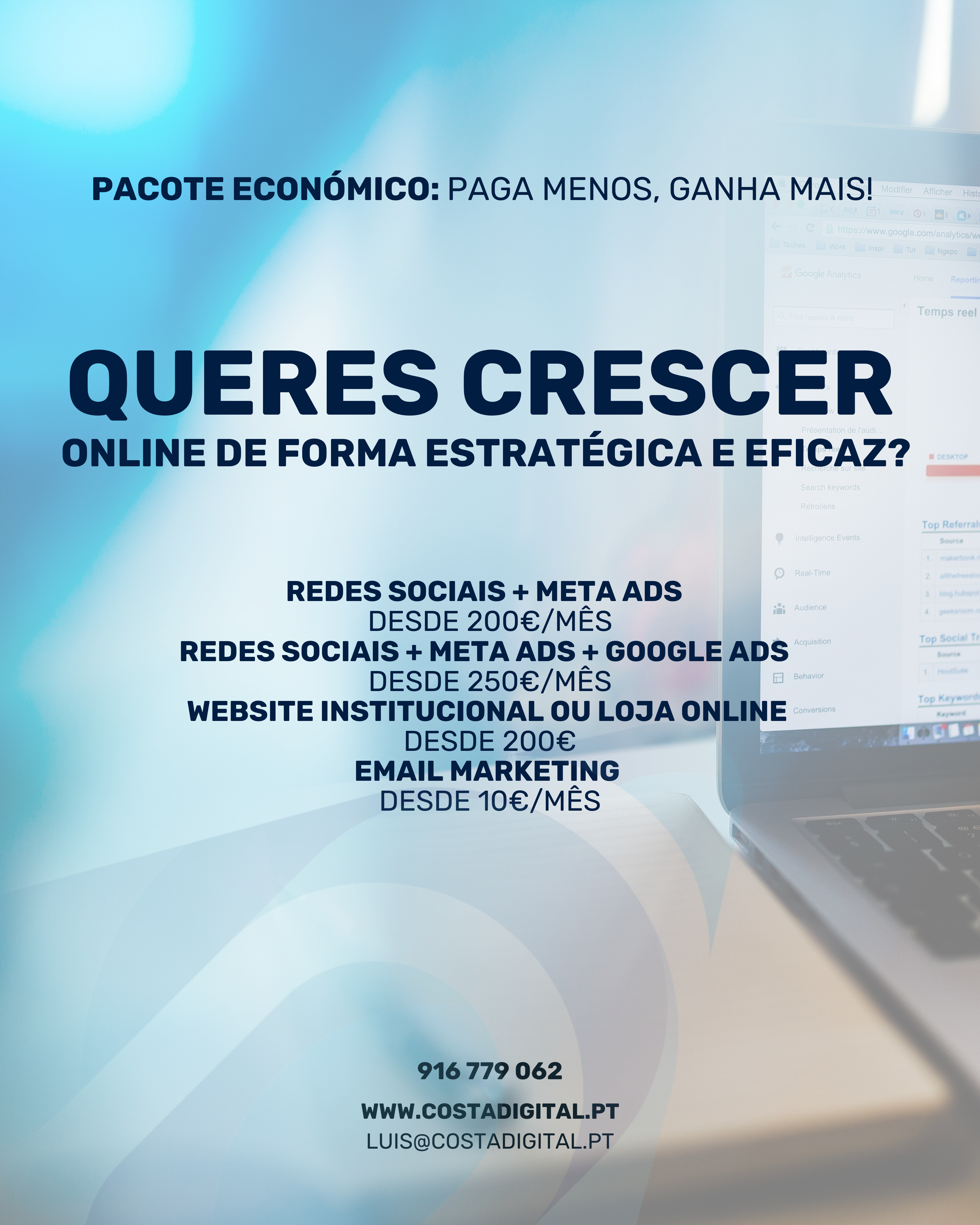Gestão de Anúncios, Redes Sociais, Websites, Loja Online e E-mail Marketing.